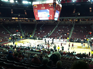 As we got to our seats about twenty five minutes before game time, the arena was again as empty as it was twenty five minutes before the game against Missouri I saw last week. But unlike the game against the Tigers, there were no Bulldogs' fans to be found. That's likely due to Mississippi state having three wins in conference, the same number of wins as the Gamecocks. So yes, it was a battle of who could escape the SEC cellar.